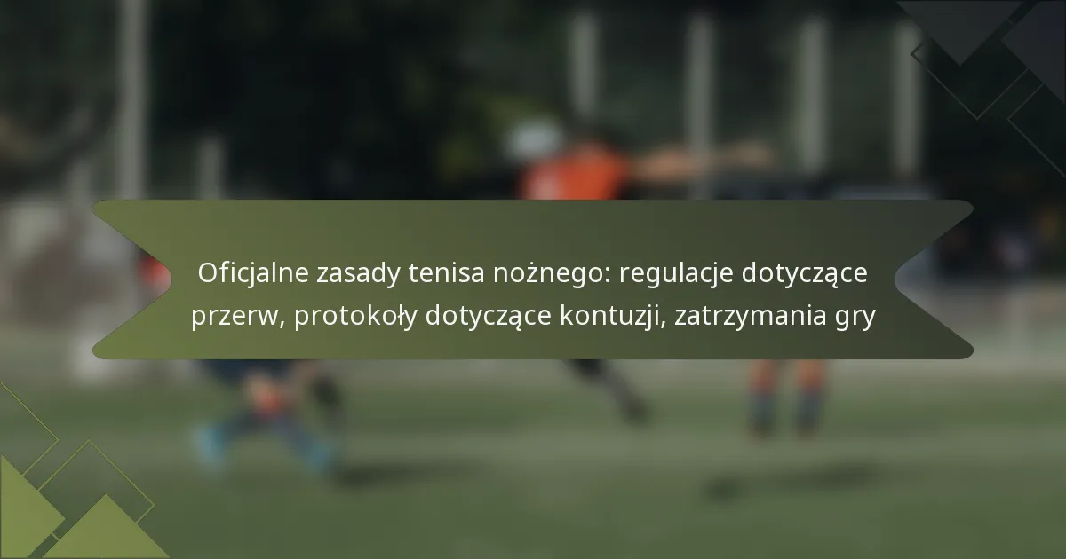 W tenisie piłkarskim regulacje dotyczące przerw są wprowadzane, aby umożliwić zawodnikom zatrzymanie gry w określonych warunkach, zapewniając bezpieczeństwo graczy i fair play. Wprowadzone są protokoły dotyczące kontuzji, aby skutecznie zarządzać urazami, szczegółowo opisując kroki dotyczące pomocy medycznej i zmian zawodników. Dodatkowo, zatrzymania gry mogą wystąpić z powodu kontuzji, sporów lub innych czynników zewnętrznych, które zakłócają przebieg meczu.