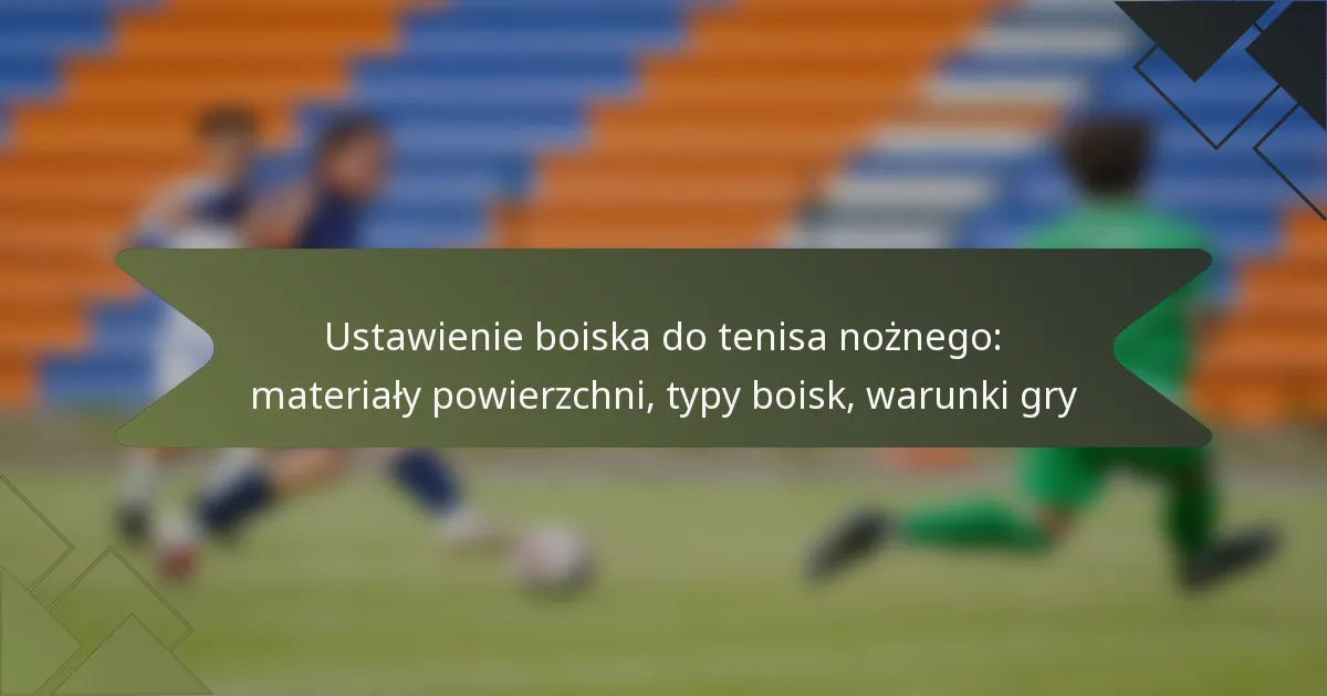 Ustawienie boiska do tenisa nożnego wymaga starannego rozważenia materiałów powierzchniowych, które mogą obejmować naturalną trawę, sztuczną nawierzchnię, glinę i twarde opcje. Każdy typ powierzchni oferuje unikalne cechy, które wpływają na rozgrywkę, konserwację i doświadczenie graczy. Dodatkowo, wybór typu boiska oraz panujące warunki gry, takie jak oświetlenie i pogoda, odgrywają kluczową rolę w poprawie wydajności i przyjemności z gry.
