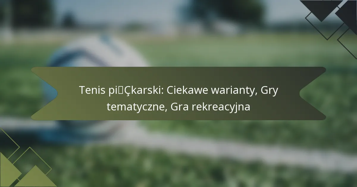 Tematyczne gry mogą znacznie wzbogacić doświadczenie tennisu piłkarskiego, dodając ekscytacji, kreatywności i zaangażowania wśród graczy. Wprowadzając unikalne tematy, gracze mogą cieszyć się świeżym spojrzeniem na grę, wspierając ducha wspólnoty i promując zabawę poprzez innowacyjne wyzwania.