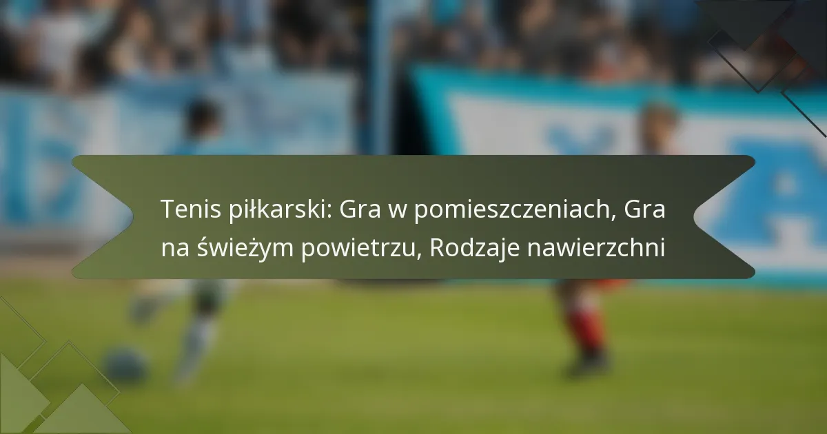Najlepsza nawierzchnia do tenisa piłkarskiego zależy od tego, czy grasz w pomieszczeniach, czy na świeżym powietrzu. Nawierzchnie wewnętrzne zazwyczaj oferują spójne warunki, podczas gdy nawierzchnie na świeżym powietrzu mogą się znacznie różnić w zależności od pogody i materiałów. Każdy typ nawierzchni ma swoje zalety i wady, które mogą wpływać na grę i komfort graczy.